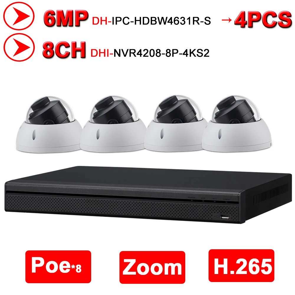 ORIGINAL Dahua 6MP 8+4 Security CCTV System 4Pcs 6MP IR IP Camera IPC-HDBW4631R-S & 8POE 4K NVR NVR4208-8P-4