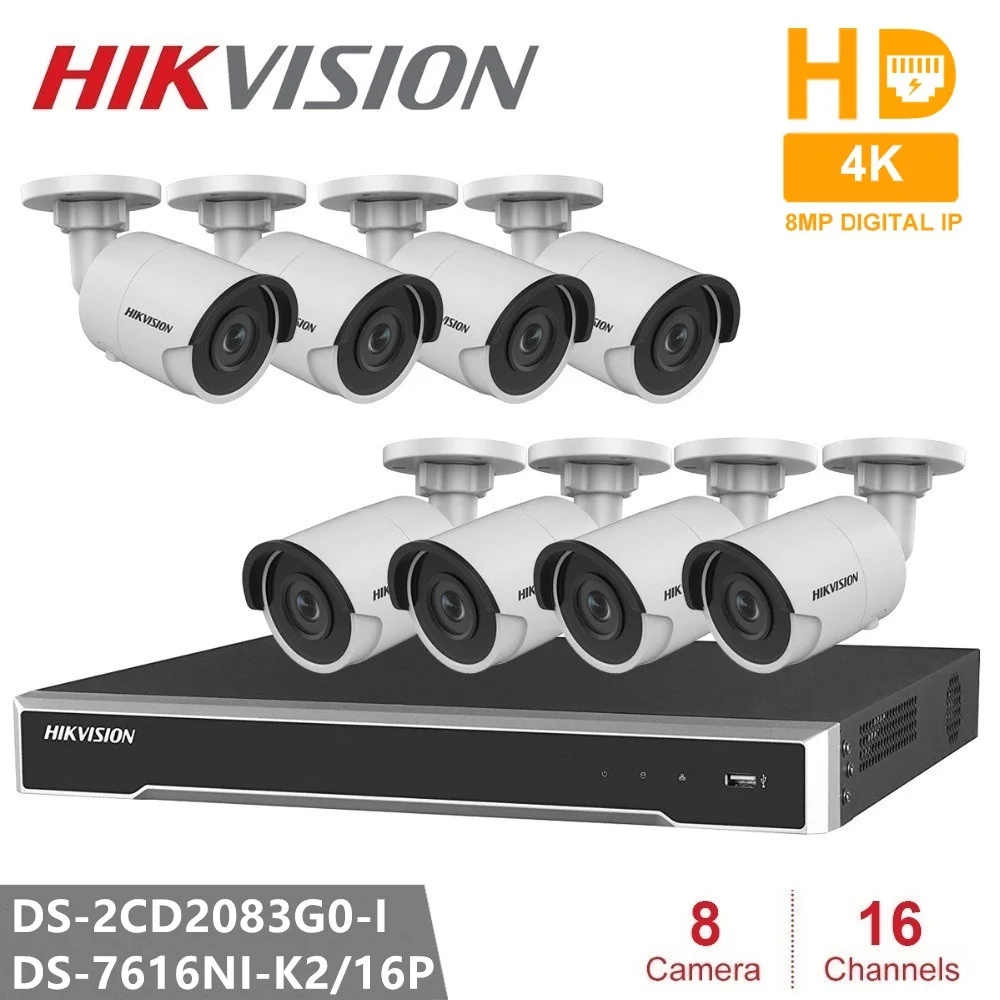 BEST QUALITY Hikvision CCTV System 16CH Embedded Plug & Play 4K NVR + 8PCS DS-2CD2083G0-I 8MP Bullet Network Cam