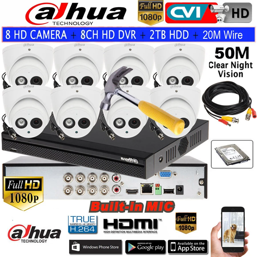 Dahua 2MP IR50M HD CCTV camera Built-in Mic HAC-HDW1200EMP-A CVI Dome camera 8CH HCVR5108HS-S3 Dome