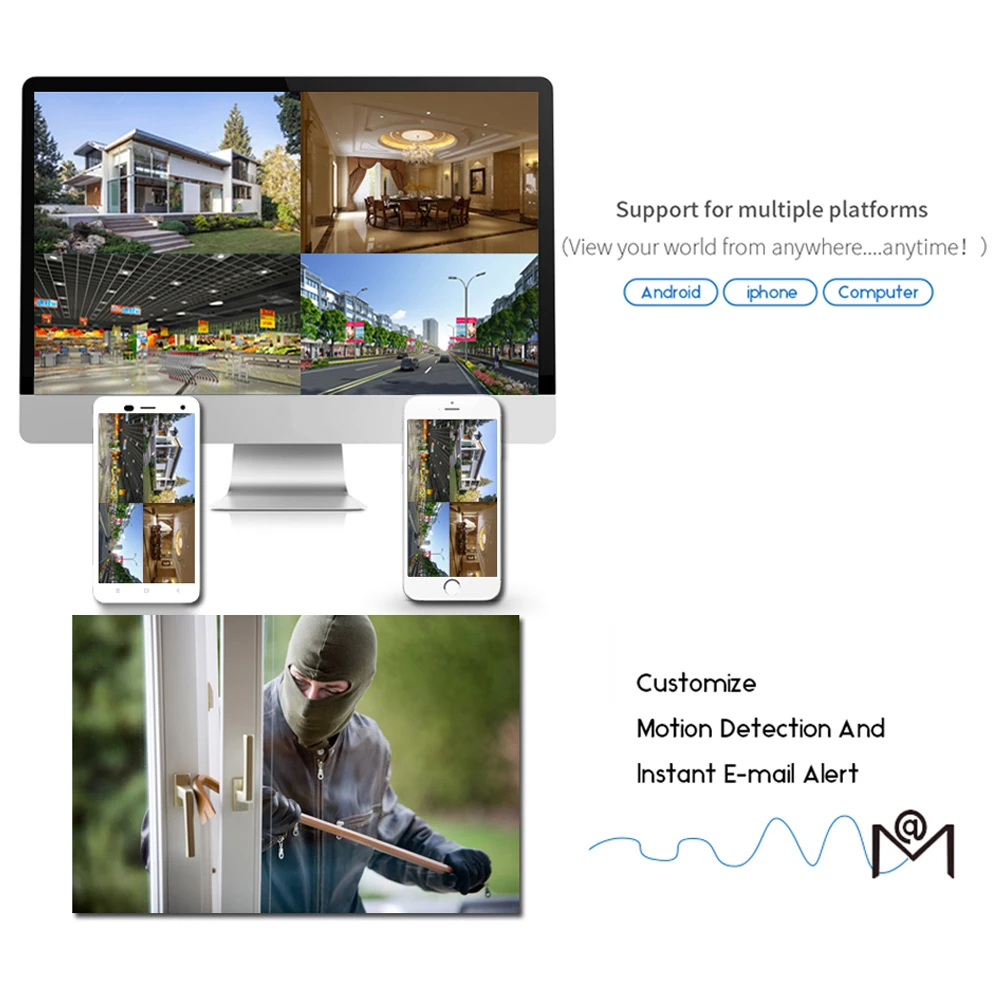 PUAroom 8CH night vision IR-Cut AHD surveillance camera RoHS FCC CE approved H.264 onvif video reco