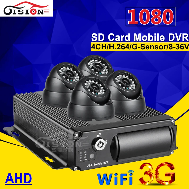 4pcs cctv car camera 4ch ahd dual sd card mobile dvr with 3g gps wifi function real time Cycle Reco