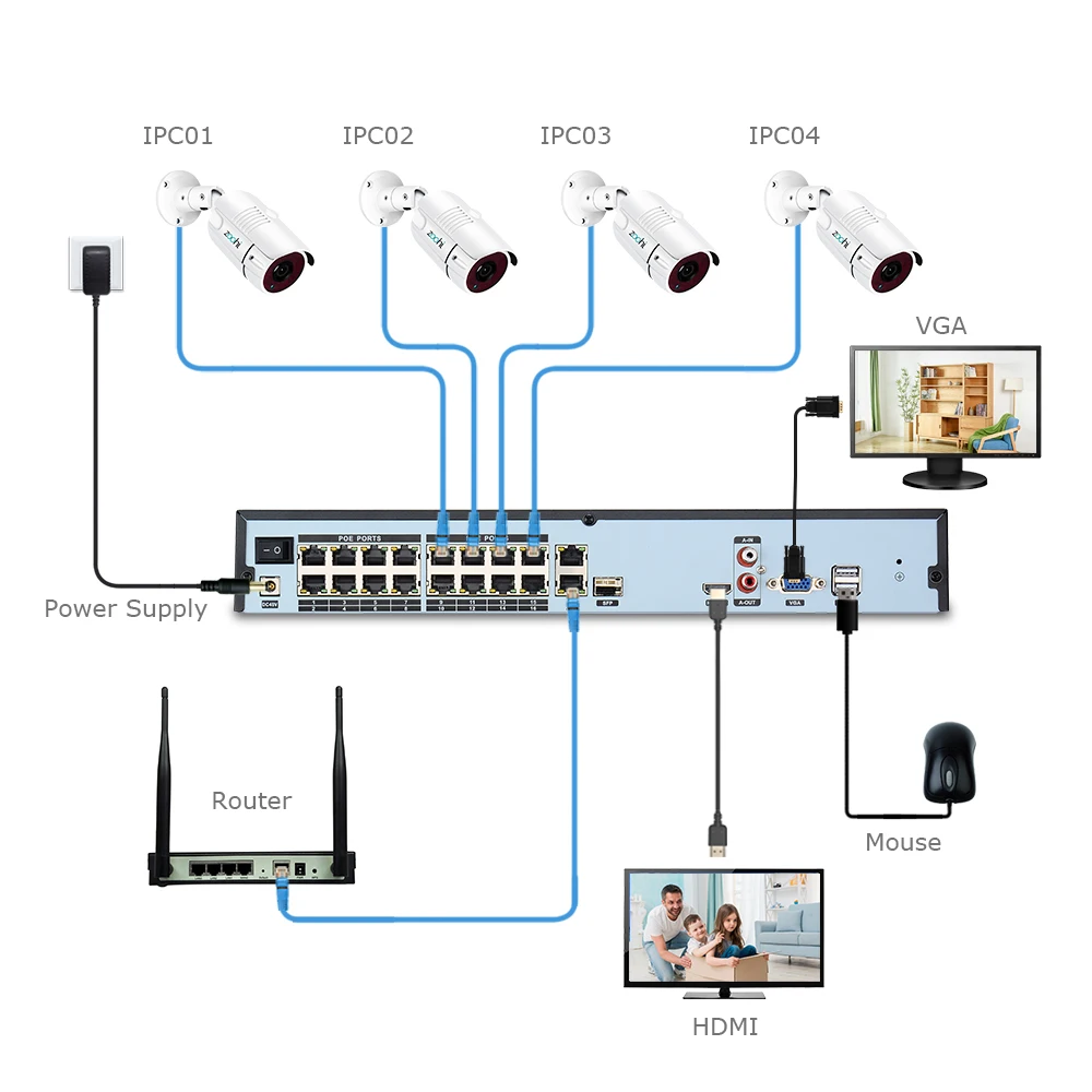 Hot Sale Zoohi 1080P 16CH Outdoor CCTV Camera Security System Kit Video Surveillance Kit Security Camera Sys