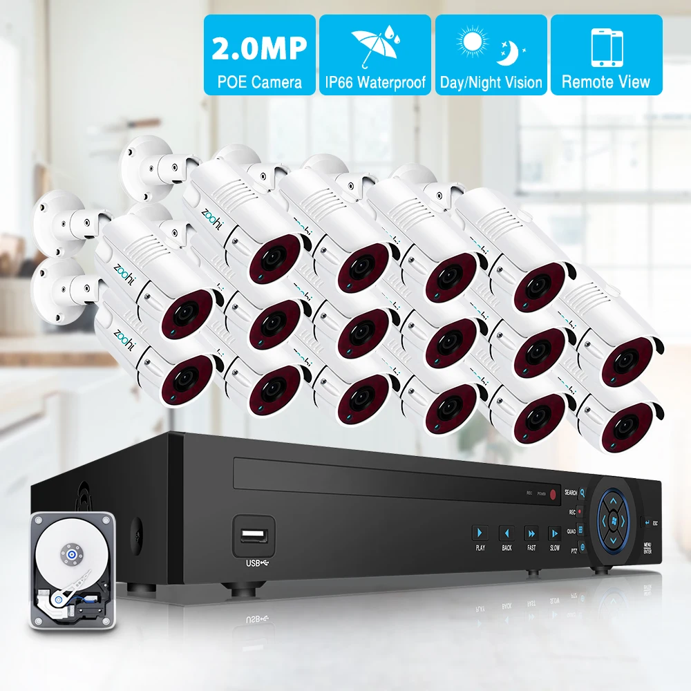 Zoohi 1080P 16CH Outdoor CCTV Camera Security System Kit Video Surveillance Kit Security Camera Sys