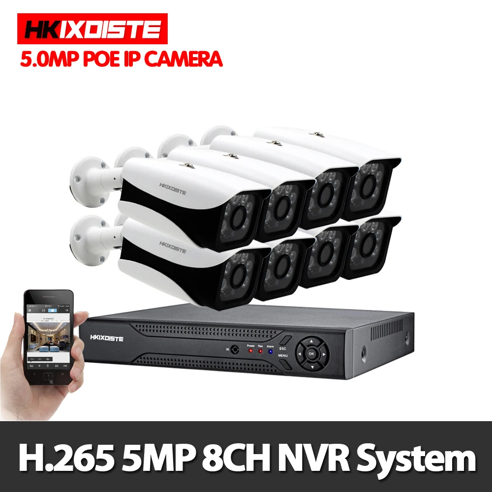 H.265 8CH 5MP 16CH 1080P POE NVR Kit CCTV Security System 5MP IR Outdoor POE IP Camera P2P Video Su