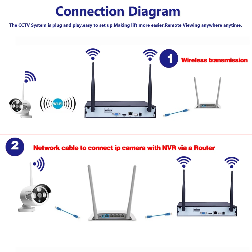 Plug and Play 8CH 1080P HD Wireless NVR Kit P2P 720P Indoor Outdoor IR Night Vision Security IP Cam