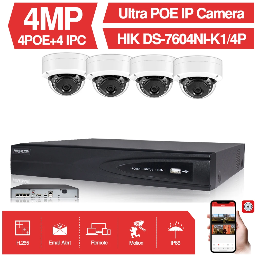 4CH CCTV System 4PCS Ultra 4MP CCTV Security POE Camera with Hikvision 4 POE NVR DS-7604NI-K1/4P DI