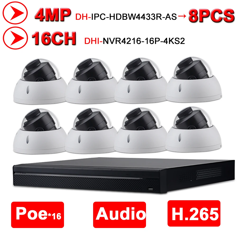 ORIGINAL Dahua 4MP 16+8 Security CCTV Camera Kit 16POE 4K NVR4216-16P-4KS2 8pcs IP Camera IPC-HDBW4433R-AS S
