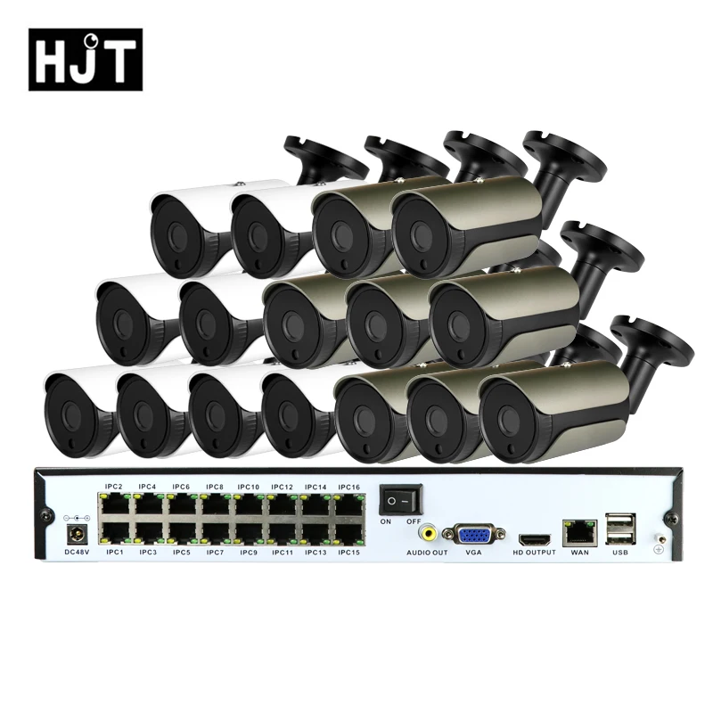 HJT IP Camera H.265 5MP 16CH NVR POE KIT Outdoor Security CCTV Camera Onvif 2.1