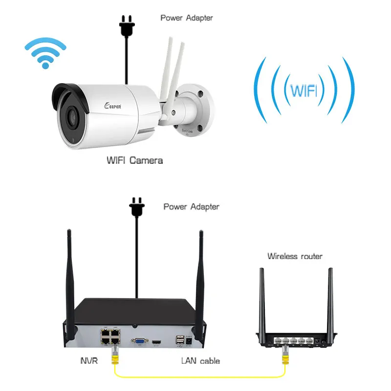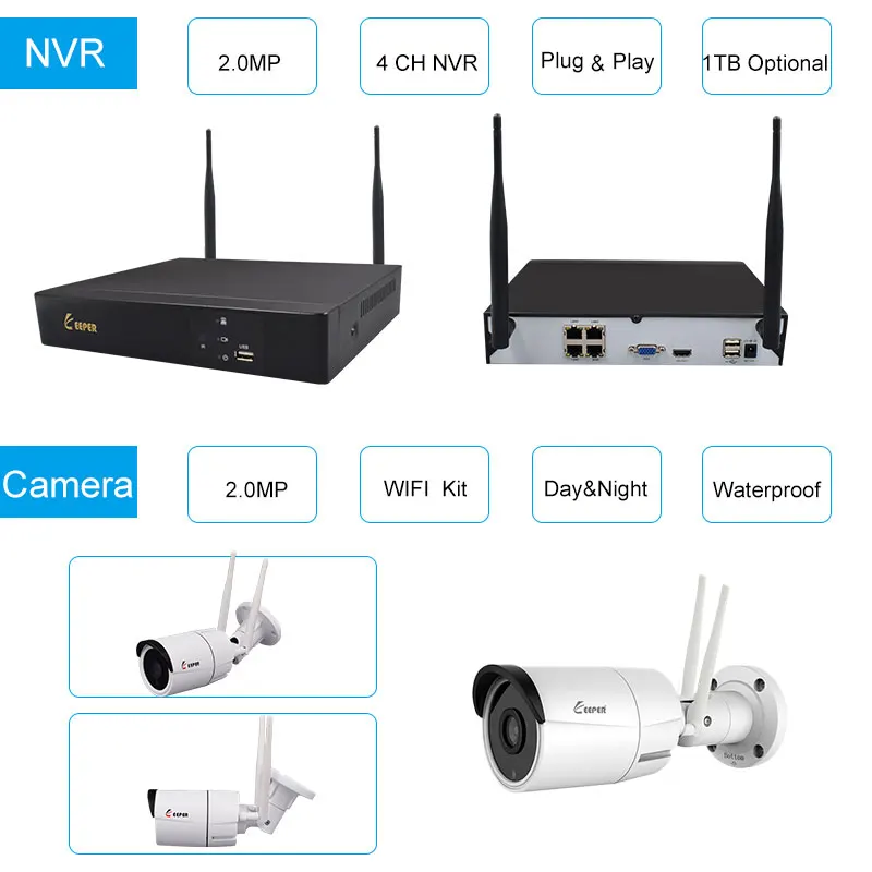 Keeper 4CH WiFi NVR KIT Wireless CCTV System 1080P 2MP Sony IMX323 Video IP Cameras Double Antennas