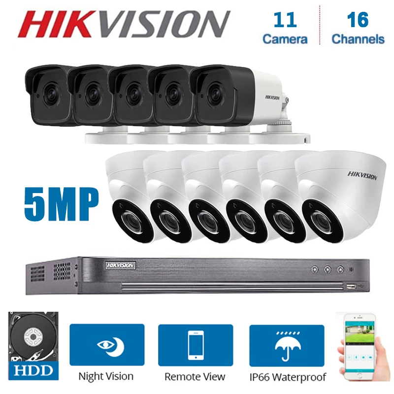 Network Hikvision 16Channels DVR Video Surveillance with 11Pcs 5MP 4 in 1Camera Night Vision CCTV S