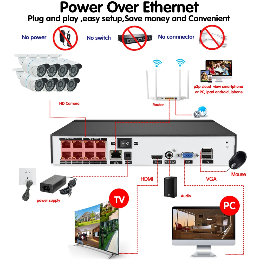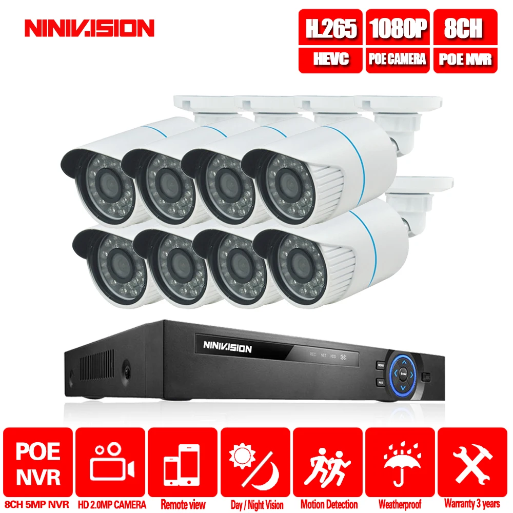 BEST NINIVISION 8CH 5MP 1080P HDMI POE NVR Kit CCTV Security System 2MP IR Outdoor Audio Record IP Camer