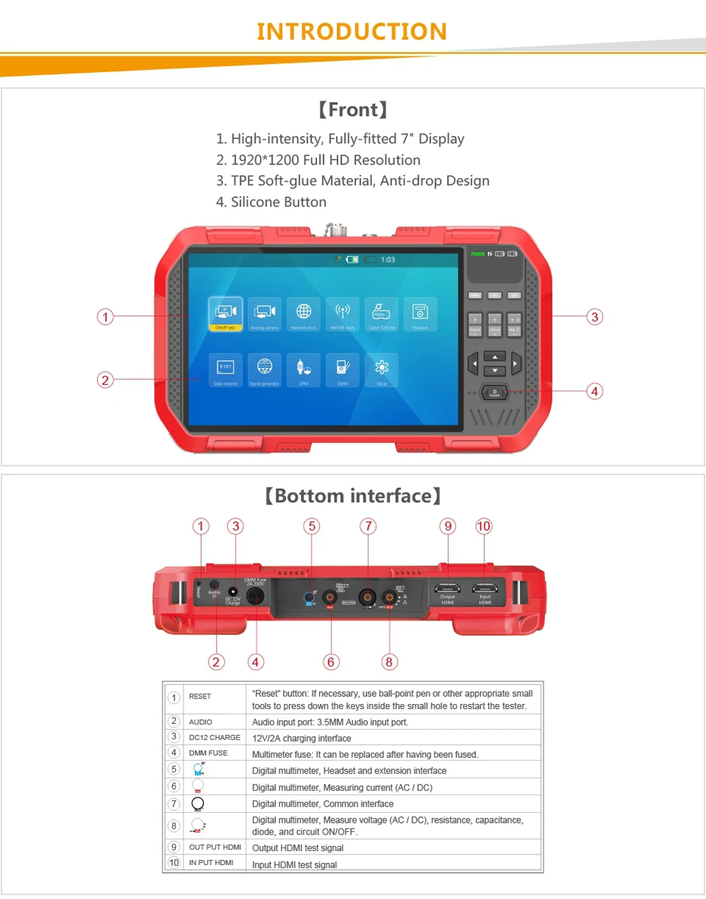 7" H.265 4K IP HD CCTV Tester Monitor AHD CVI TVI Camera Tester 8MP WIFI POE 12V Video Cable Testin