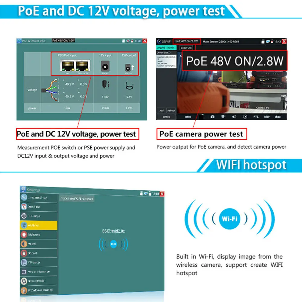 8" 1080P IPC Camera CCTV Tester Monitor Wifi TVI CVBS IP Discovery Camera Tester Security ONVIF Vid